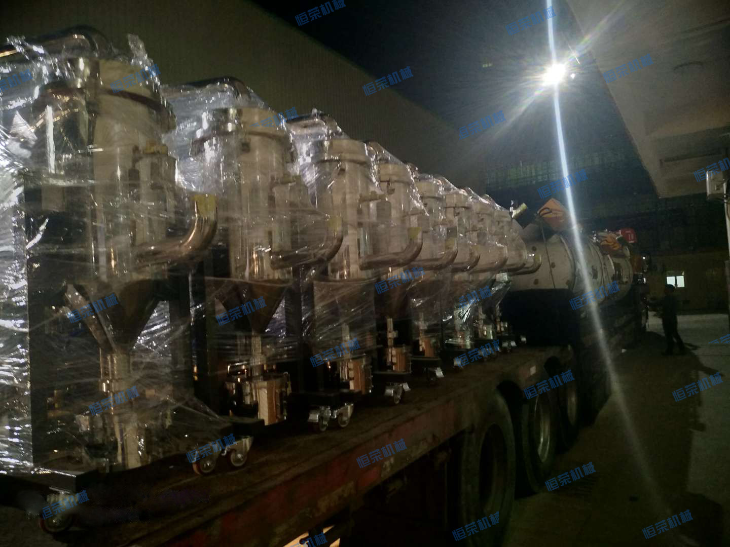 夜深人靜的時候,也許你已經(jīng)進(jìn)入夢鄉(xiāng),而我們恒榮的大后方,卻仍然在打包、裝車,井然有序,有條不紊的忙碌著?。?!3月16日廣東佛山某PE薄膜生產(chǎn)商在我司訂了一批中央供料系統(tǒng),經(jīng)過全體員工的共同努力,在4月9號如期完成各項檢測,整裝待發(fā)!
